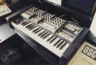 Wasps were used by a number of well-known groups and you can still find secondhand ones advertised quite frequently. At least one company, Analogue Solutions, has produced kits to add additional features to the Wasp. - THE OXFORD SYNTHESISER COMPANY -The OSCar was Huggett's attempt to build a sophisticated performance synthesiser with state-of-the-art sounds, yet still at an affordable price. It was a compact dual oscillator analogue-digital hybrid built into a substantial rubberised casing with a full-size three-octave keyboad. I described it at the top of this page as largely analogue because although it has much in common with classic analogue synthesisers and its sounds emerge from analogue circuits it has a control system and additional features that are products of digital technology. The synth has two wide-range digitally controlled oscillators (DCOs), capable of producing both conventional analogue waveforms and programmable additive waveforms. I used the description "mostly monophonic" at the top of the page because the two oscillators can be set to respond to the keyboard independently thus giving a duophonic effect. There is also a separate white noise source. A vital feature of any analogue synth is its filtering and the OSCar is strong in that department. Like the Wasp, from which it evolved, it has analogue filtering but with greater flexibility and control. There are two 12dB/oct filters which can be linked for a steeper 24dB/oct response or separated for subtler effects. They can work as low-pass, high-pass or band-pass (when one is effectively high-pass and the other low). There are two ADSR envelope generators - one for filtering and other tonal dynamics and one dedicated to the output amplifier. There is also a low frequency oscillator (LFO). All of these elements have a wide range of control options that allow them to work together in different ways as well as to link and respond to other signals, such as sequencer triggering. OSCar had many innovative features but perhaps the most useful for performers was the fact that voices were programmable. At that time most other analogue synths suffered from the disadvantage that in order to recreate a sound setting you had to remember where you set all the various knobs and switches. OSCar's knob settings could be stored in a digital memory, which allowed you to hold up to 32 different "patches" and recall any one at the push of a couple of buttons. All this while retaining the classic and instinctive arrangement of separate knobs for each parameter - unlike many other programmable synths of the time that required users to enter numbers through multi-purpose buttons and to learn seemingly endless levels of menus. Another selling point, and one which distinguishes OSCar from many of its contemporaries, is that from September 1984 there was MIDI. Although OSCar has a fairly basic MIDI spec compared to modern keyboards, it is perfectly serviceable. (I've used my OSCar as a controller keyboard. Its only failing in that role is its lack of velocity or aftertouch functions - but with my playing that's almost irrelevant!) The OSCar came with various automatic playing features. There was an arpeggiator; there were various arrangements for repeatedly triggering envelopes under the control of either an internal clock or external sync; and perhaps most forward looking of all, there was an inbuilt sequencer - initially capable of storing up to 580 steps and expanded in later models to 1,500 steps. This made the OSCar a tenuous ancestor of sophisticated "music workstations". It has to be said that although the sequencer is theoretically capable of complex compositions the lack of a visual display makes it fiendishly awkward to program. Editing and complex tunes are virtually impossible. Despite these limitations the sequencer offered some useful creative possibilities when used in combination with other features such as the duophonic mode. The original retail price of the OSCar was UK£599 and approximately 2,000 are said to have been built during the short lifespan of the Oxford Synthesiser Company. Huggett's ideas seem to have been constantly racing ahead and there were numerous revisions to the specification during the production run. Had the company been as successful financially as it was technically then there is no knowing what OSCar would have evolved into. At a trade show in Frankfurt in 1985 the company exhibited a rackmounted polyphonic synth module called the ASG (for Advanced Sound Generator), which used 16 OSCar voice cards. As well as the digital additive synthesis featured in the OSCar, the new synth could use its digital oscillators to play back sampled sound. It was clearly marching into the territory of megabuck machines such as the PPG Wave, Synclavier or Fairlight. But the company was short-lived and Huggett moved on to other projects. (He worked for Akai on the operating system for its S1000 sampler and more recently he has worked for Novation - a British company which has combined analogue sounds with modern control technology) The OSCar's downfall was that it quickly ended up having to compete with new polyphonic programmable MIDI synths produced by the likes of Casio and Yamaha. Very soon the DX7 arrived and became the "must have" synth for 1980s pop bands as well as an infinitely complex sound design tool for Brian Eno. And for those eclectic souls who still wanted analogue then Sequential Circuits or Roland were offering OSCar's programability and MIDI features but in polyphonic machines. Nonetheless, OSCar lives on. It is one of many vintage synths to win new fans following the revival of analogue sounds through dance music. Thanks to Chris Huggett's foresight it can link up to modern MIDI systems more easily than other vintage analogue synths. Its digital control system means that its tuning is much more reliable than notoriously unstable analogue contemporaries. And, best of all, it offers a wide range of gre